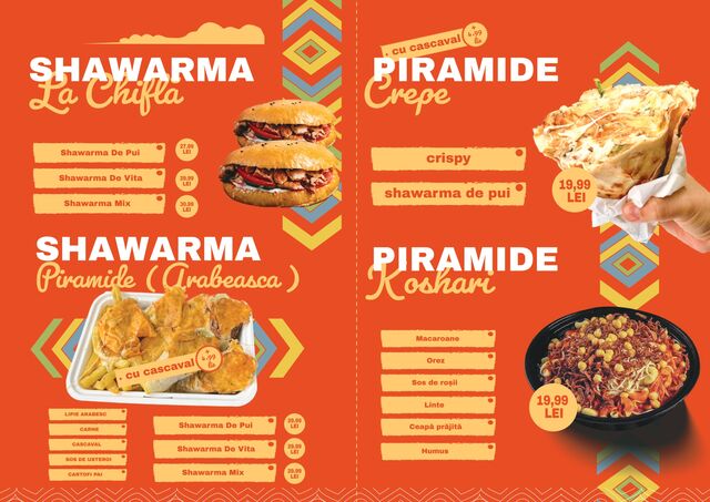 Piramide Fast Food aduce magia bucătăriei egiptene direct pe masa ta, oferind preparate delicioase și autentice, gătite cu pasiune și ingrediente de calitate. Situat în Zalău, acest loc unic te invită să explorezi arome exotice și combinații inedite, perfecte pentru iubitorii de mâncare deosebită.